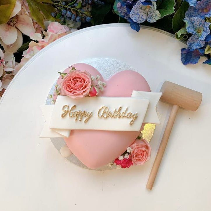扑扑心形蛋糕以柔美粉紅愛心造型,搭配玫瑰花與金色Happy Birthday緞帶,適合女生、媽媽或浪漫生日,砸爆一刻花瓣浪漫散落,溫馨甜蜜!